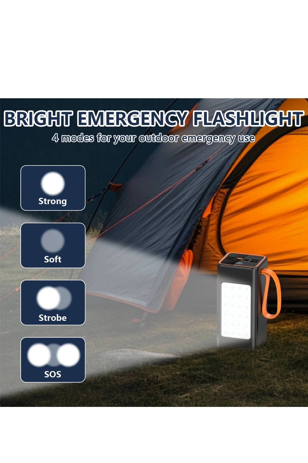 * Gelişmiş LED Kamp Lambası: Ön panelde yer alan güçlü LED panel, kamp çadırınızı veya karanlık ortamları aydınlatmak için idealdir. Gece yürüyüşlerinde fener olarak da kullanılabilir.