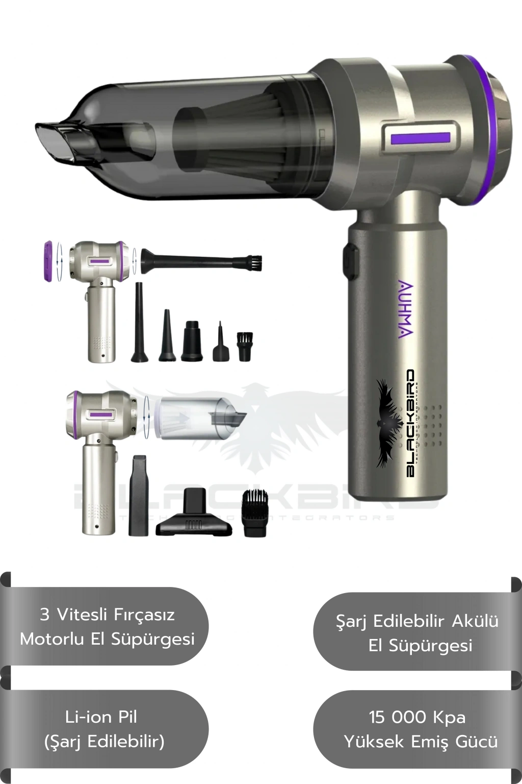 Blackbird MK-5801 16000PA Kablosuz Araç Süpürgesi | 3 Kademeli Güç | Şarjlı El Süpürgesi