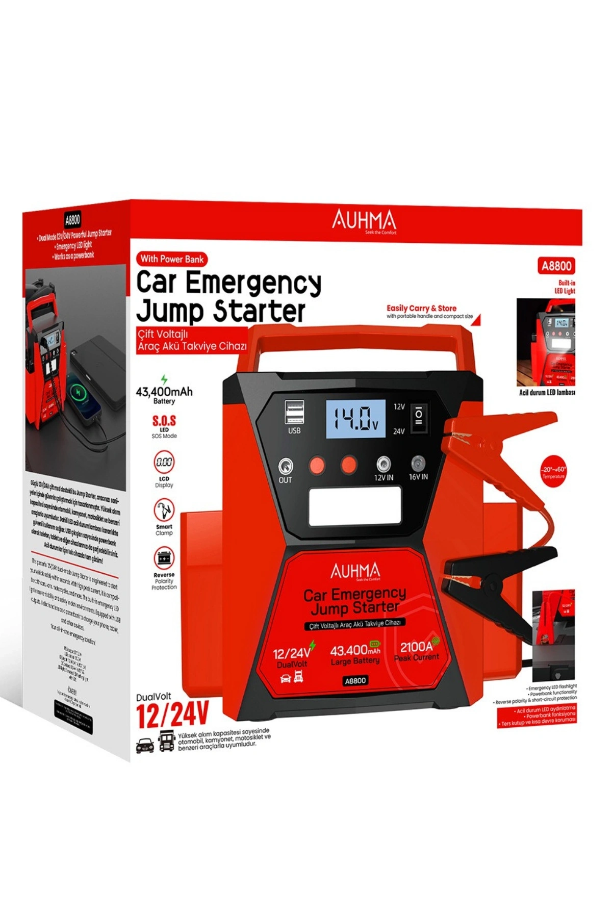 Hem binek otomobiller hem de ağır vasıtalar (kamyon, otobüs, tır) için tasarlanan Auhma A8800, yüksek performansı ve güvenliği bir araya getiriyor. 2100A tepe akımı sayesinde en zorlu hava koşullarında bile aracınızı saniyeler içinde çalıştırır.