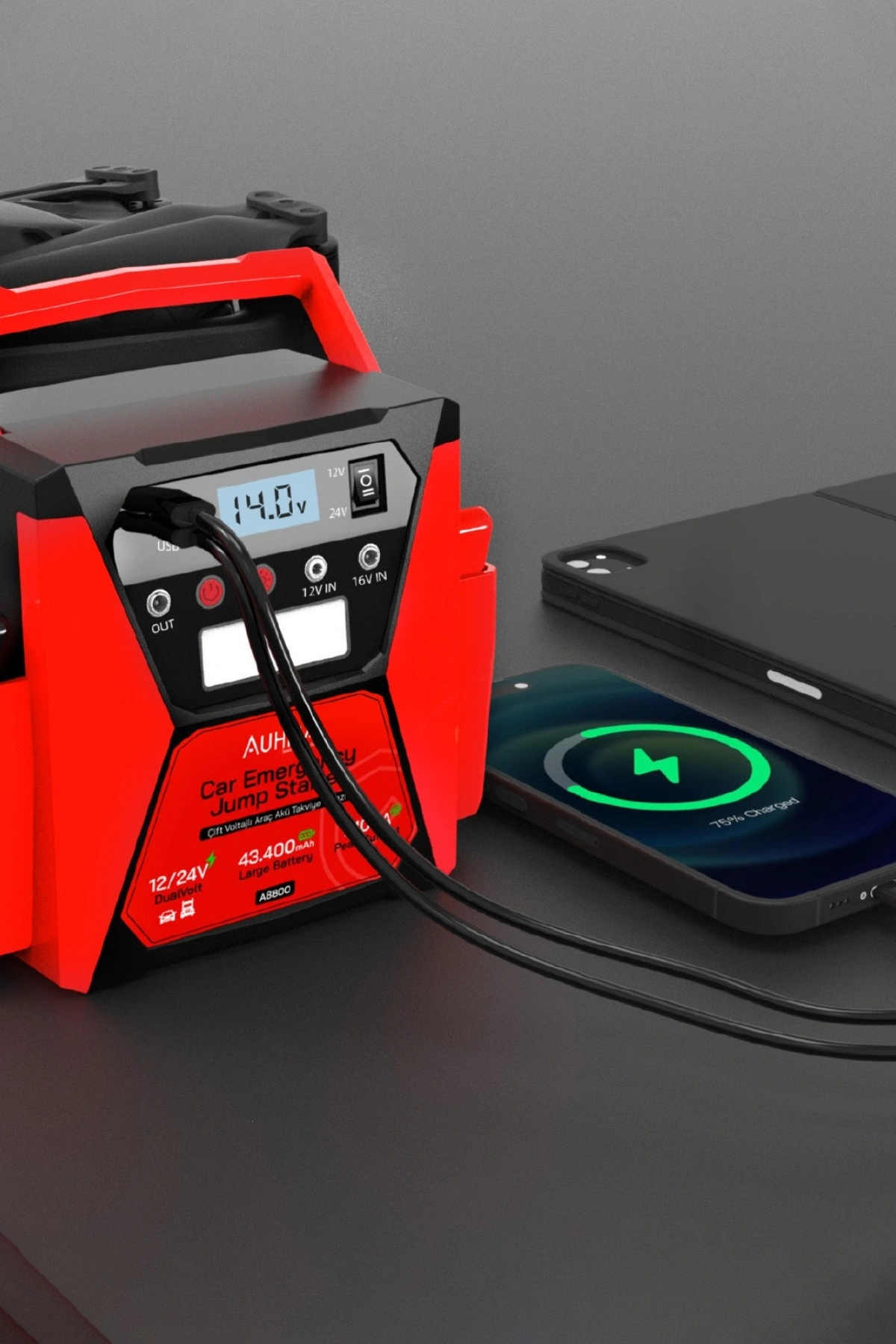 * Devasa Kapasite: 43.400 mAh bataryası ile sadece akü takviyesi yapmaz, aynı zamanda telefon ve tabletleriniz için güçlü bir Powerbank görevi görür.