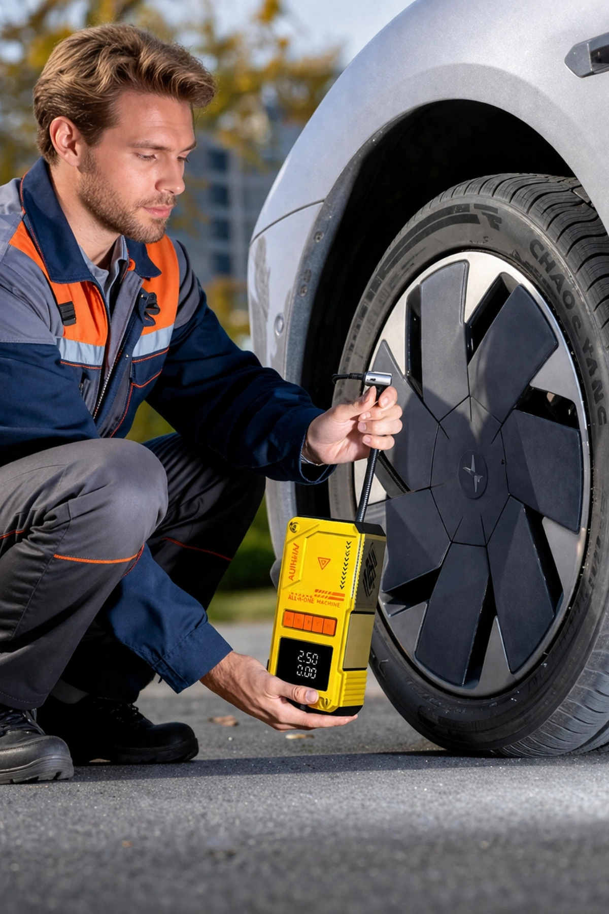 - Akıllı Dijital Kompresör: 150 PSI maksimum basınç gücüyle sadece araç lastiklerini değil; bisiklet, motosiklet lastiklerini ve spor toplarını da hızla şişirir. Önceden ayarlanmış (Preset) modlar sayesinde hedef basınca ulaşıldığında otomatik olarak durur.