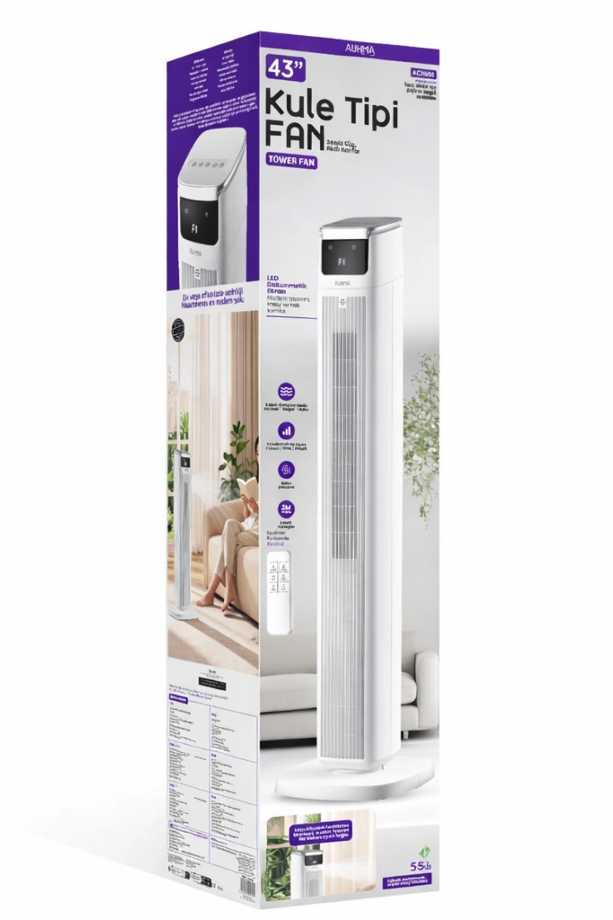 Paket İçeriği: Auhma ACFN05 Kule Tipi Vantilatör, Uzaktan Kumanda, Kullanım Kılavuzu