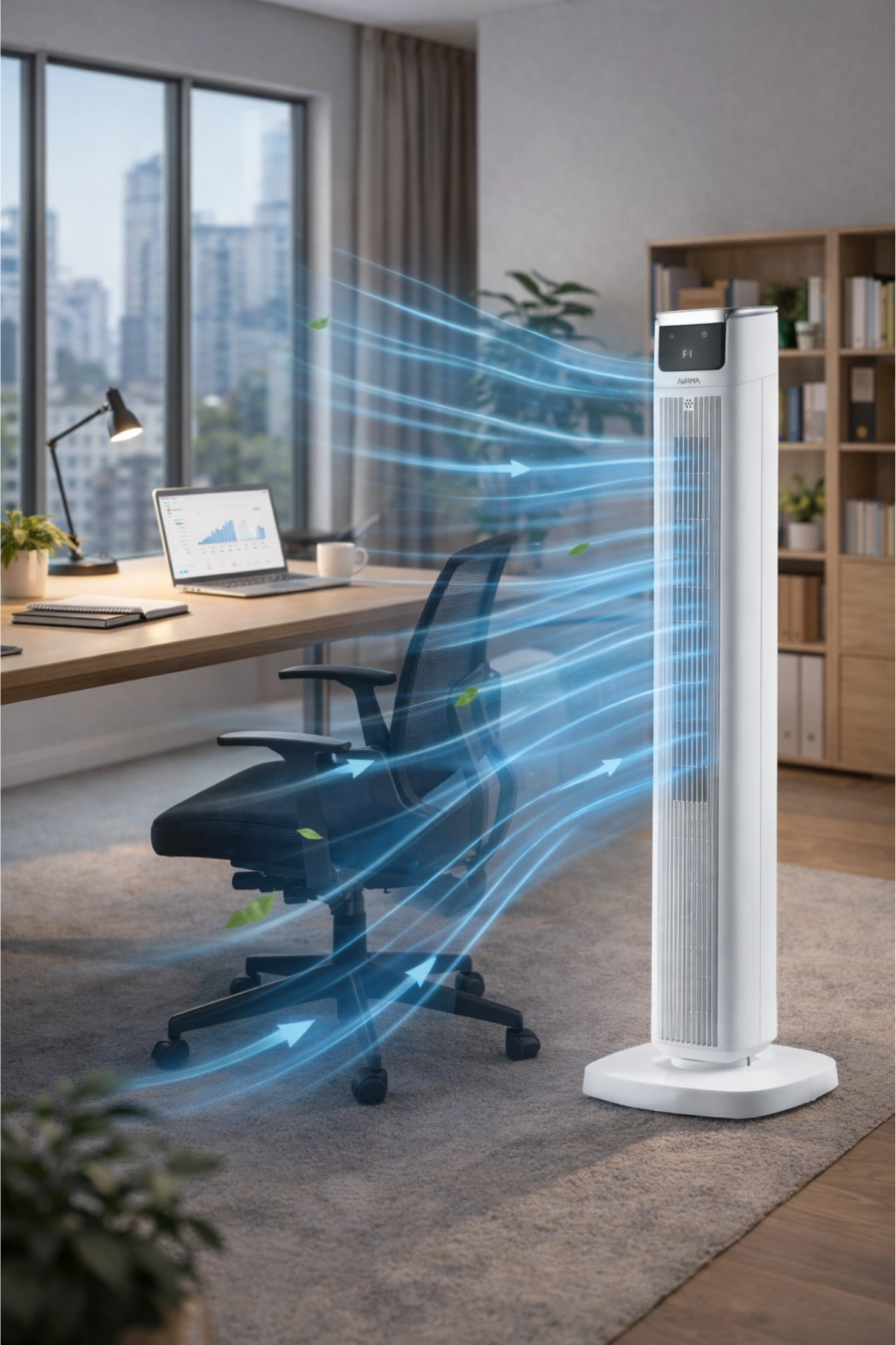 Geleneksel vantilatörlerin aksine yer kaplamayan ince ve modern tasarımıyla dekorasyonunuza uyum sağlar. Özellikle bebekli aileler ve evcil hayvan sahipleri için kanatsız yapısı (içeride korunaklı fan) daha güvenli bir kullanım sunar.
