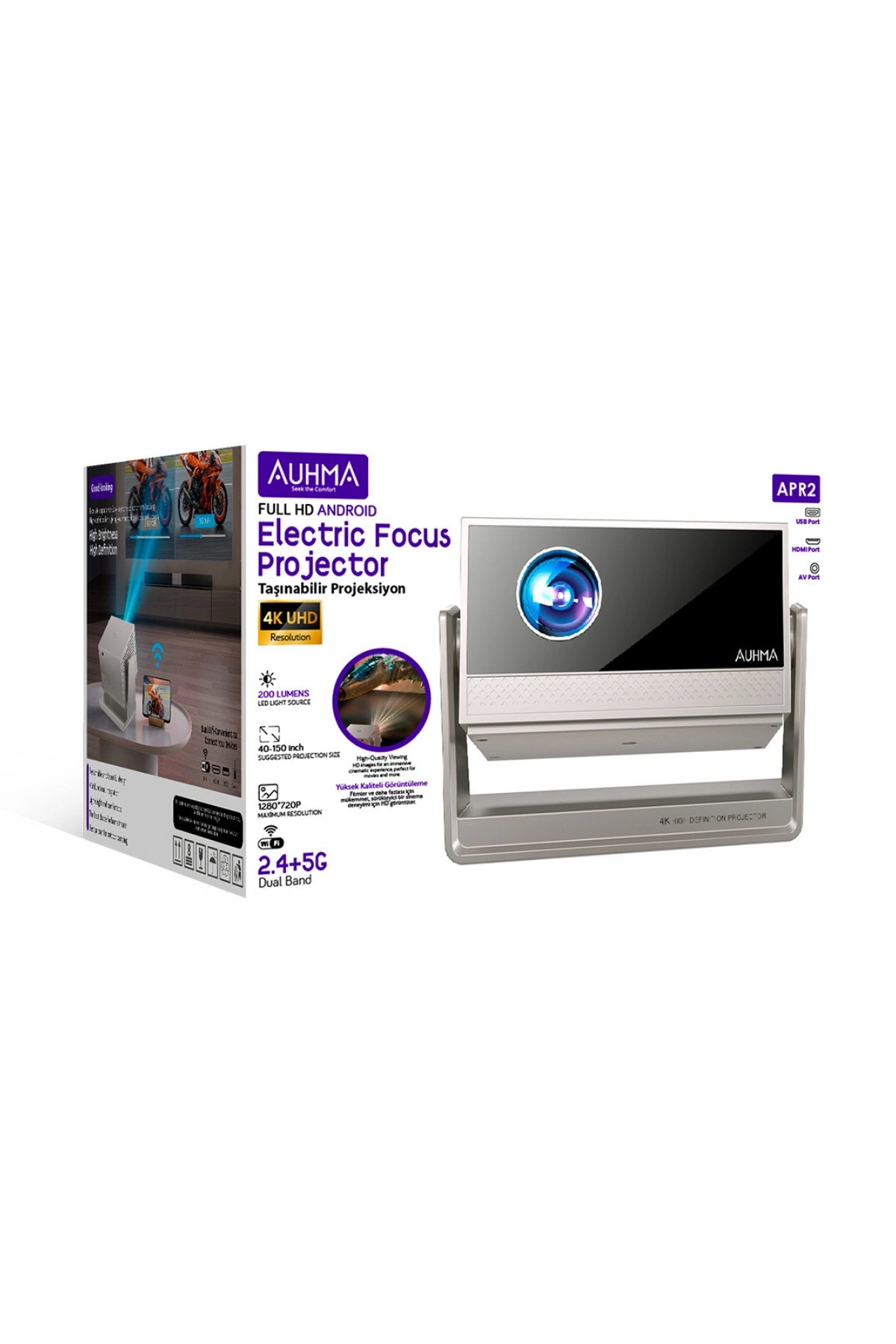 Auhma APR2 Full HD Android Akıllı Projeksiyon Cihazı ile Sinema Keyfini Her Yere Taşıyın!