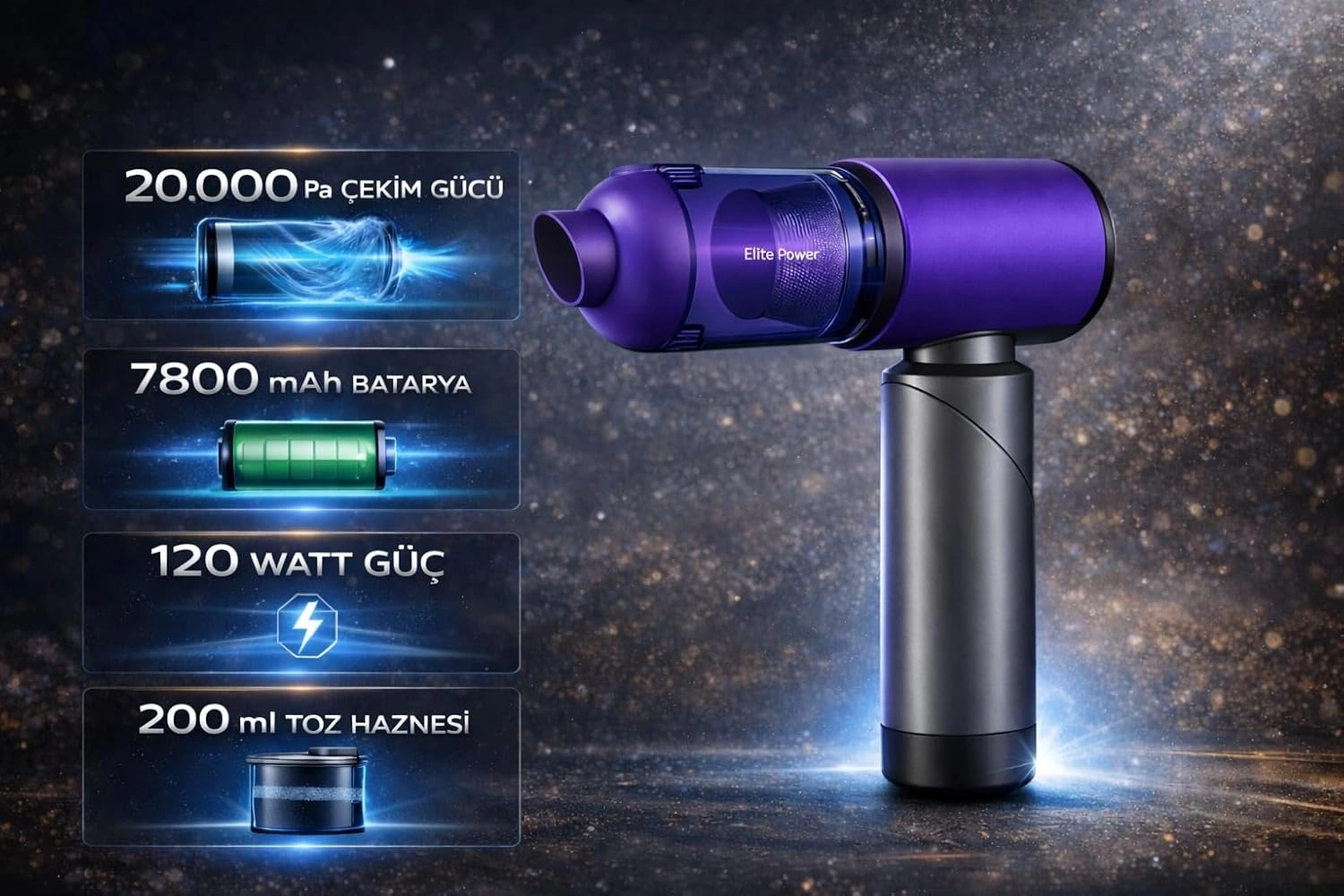 * Çift Fonksiyon (Vakum & Üfleme): Bir tarafıyla güçlü çekim yaparken, diğer tarafıyla klavye araları ve hava kanalları gibi dar alanlardaki tozları basınçlı hava ile uzaklaştırır.