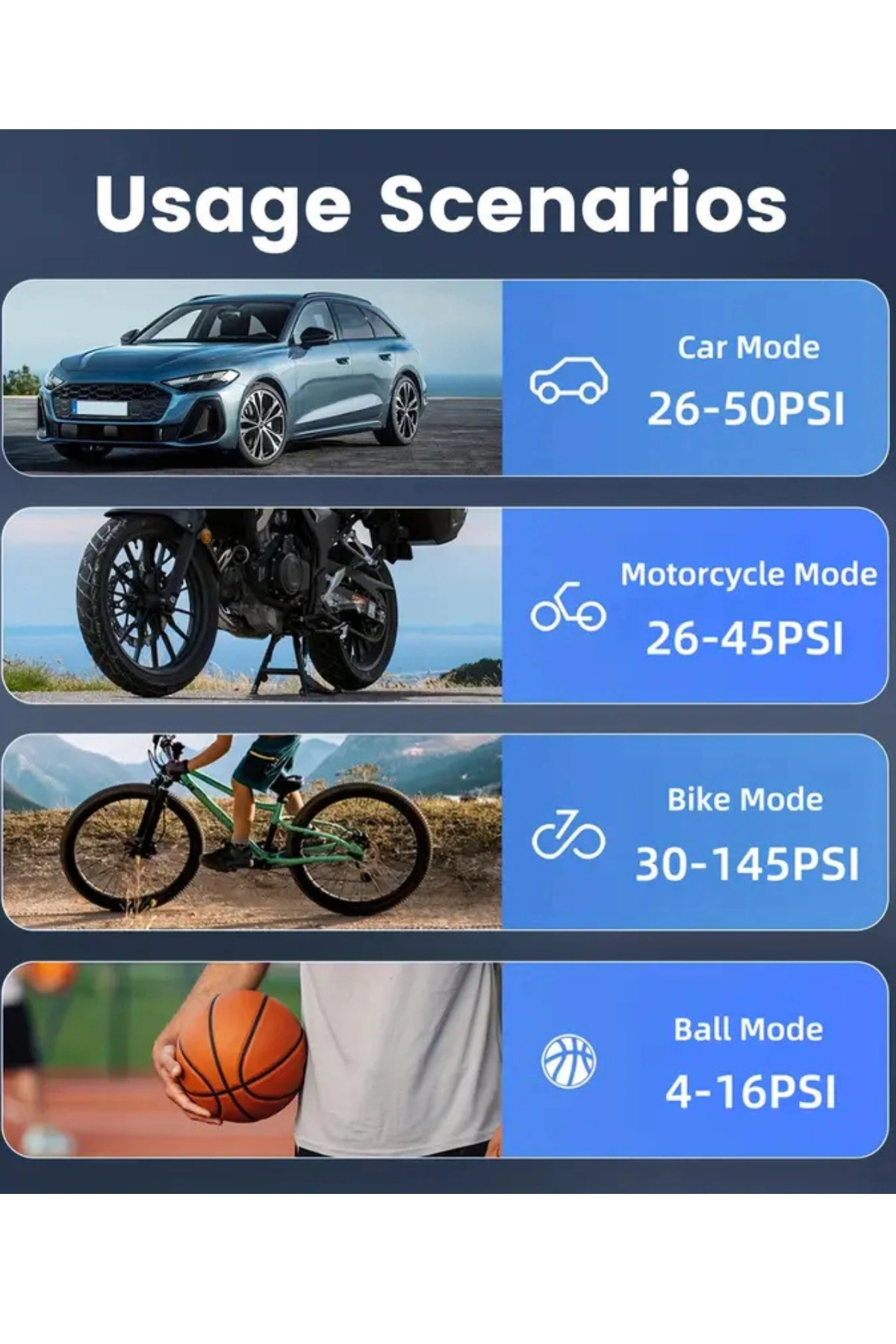 Otomobil, motorsiklet, bisiklet ve top gibi farklı ihtiyaçlar için tasarlanmış, taşınabilir ve kablosuz bu dijital hava kompresörü ile tanışın. Sadece lastik şişirmekle kalmayıp, acil durumlarda hayat kurtaran özellikler sunan 4'ü 1 arada bir üründür.