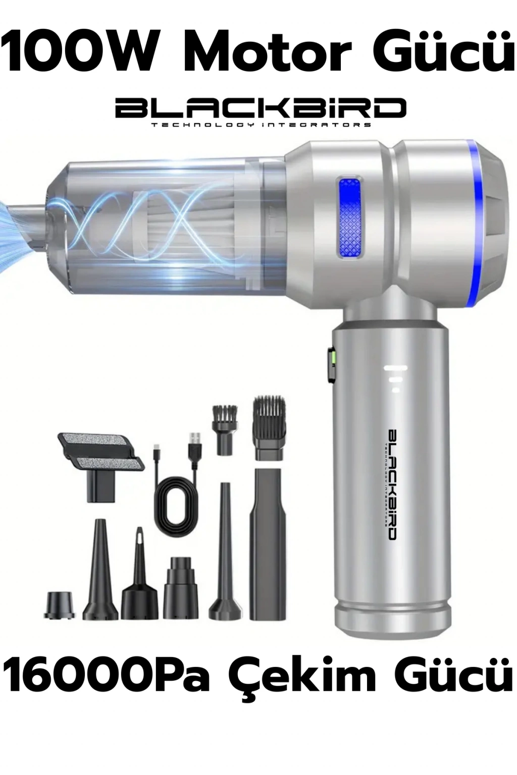 Blackbird MK-5803 | 16000PA Vakum + Üflemeli 2’si 1 Arada Şarjlı Araç Süpürgesi