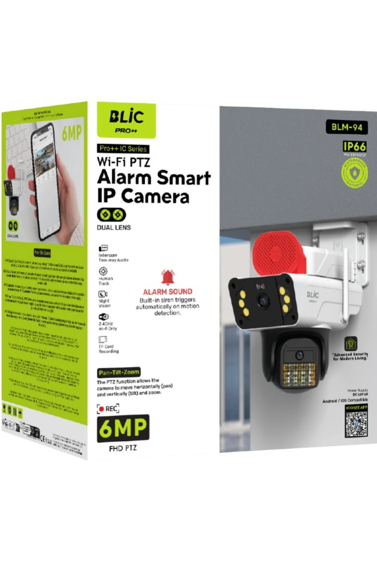 Evinizin veya iş yerinizin güvenliğini bir üst seviyeye taşıyın! Blic Pro++ BLM-94, çift lens teknolojisi ve 6MP ultra yüksek çözünürlüğü ile en ufak detayları bile kaçırmamanızı sağlar. IP66 su geçirmezlik sertifikası sayesinde her türlü hava koşulunda kesintisiz koruma sunar.