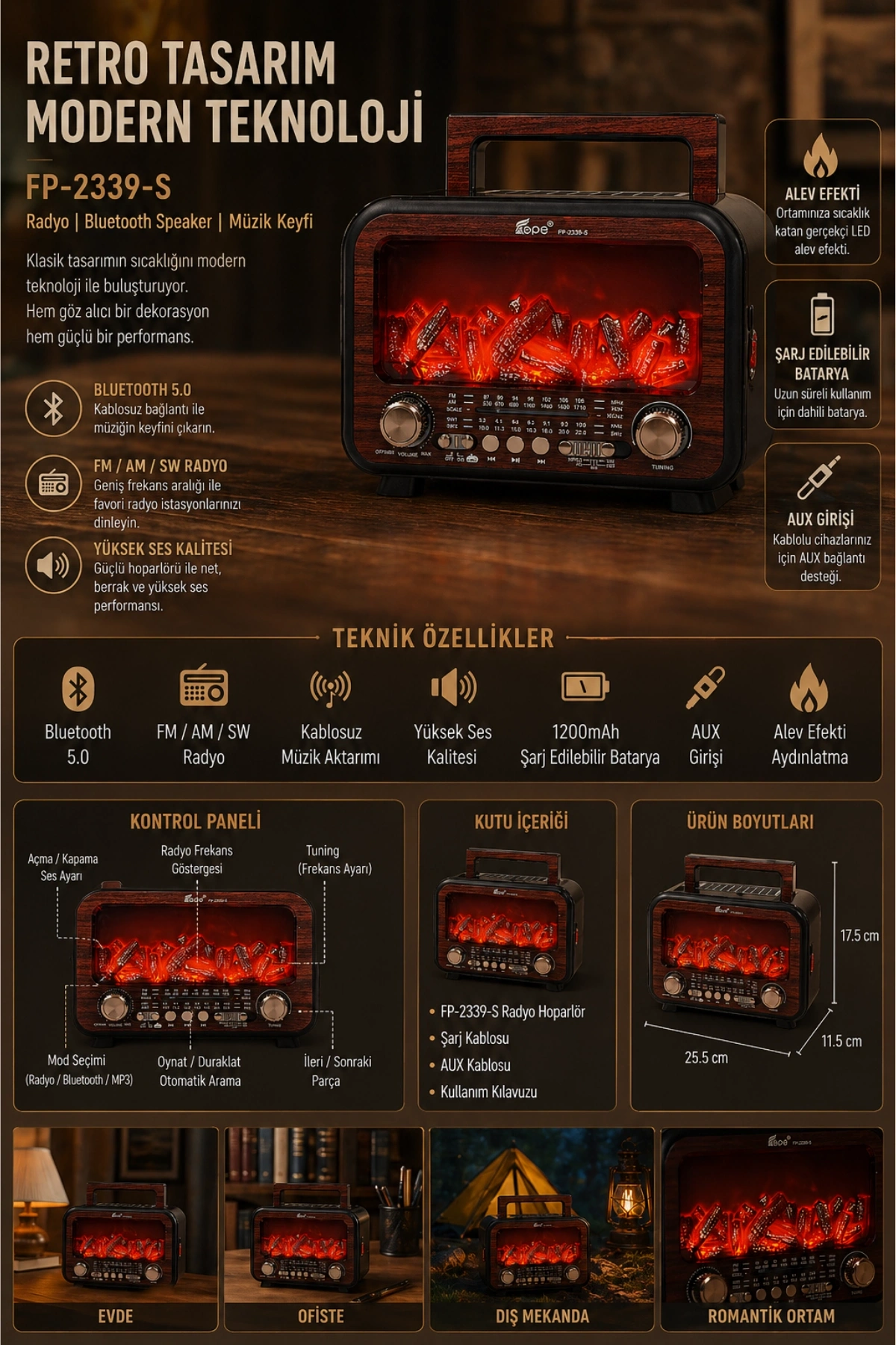 Nostaljiyi Modern Teknolojiyle Birleştirin: Fepe FP-2393-S Şömine Görünümlü Retro Radyo