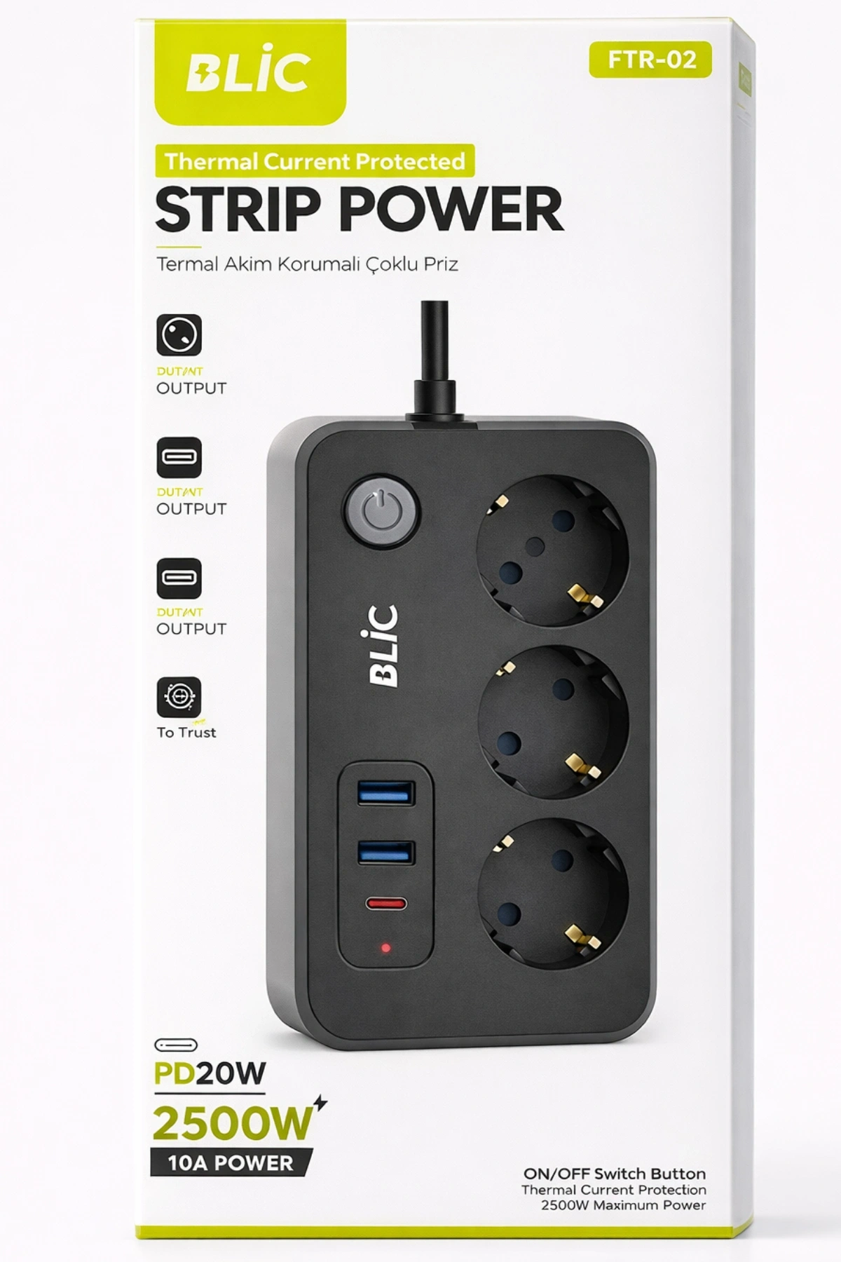 Blic FTR-02 Akım Korumalı Akıllı Grup Priz – Tek Prizle Tüm Cihazlarınızı Güvenceye Alın!