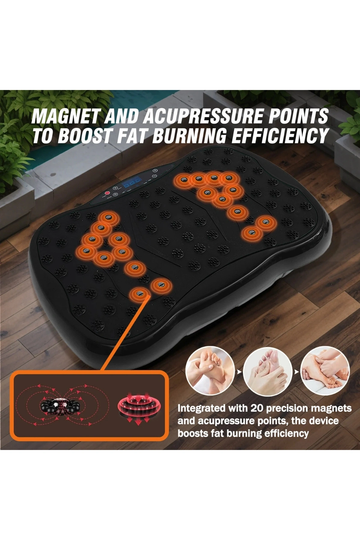 • Yağ Yakma Verimliliğini Artırmak İçin Mıknatıs ve Akupresür Noktaları Plaka, yağ yakma sürecini hızlandırmak için birlikte çalışan 20 hassas mıknatıs ve akupresür noktasına sahiptir ve her seansı daha etkili hale getirir.