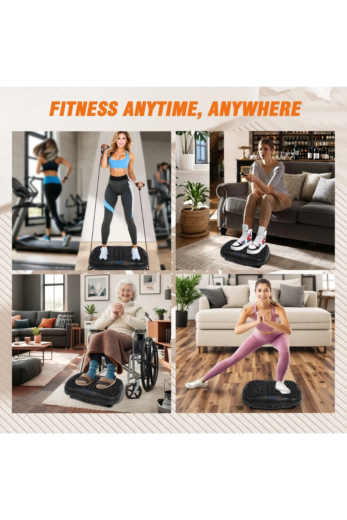 • Diz Dostu Tasarım, Her Yaş İçin Güvenli Dizlere ve eklemlere nazik olacak şekilde tasarlanan titreşim plakası, kasları uyarır, bu da onu yaşlı yetişkinlerin yaralanma riski olmadan sağlıklarını korumaları veya iyileştirmeleri için mükemmel hale getirir.