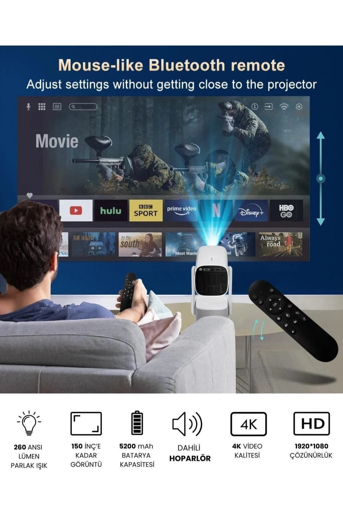 * Akıllı İşletim Sistemi (Android 11.0): Dahili Android işletim sistemi sayesinde doğrudan projektör üzerinden uygulamalara erişebilir, film ve dizileri kolayca izleyebilirsiniz.
