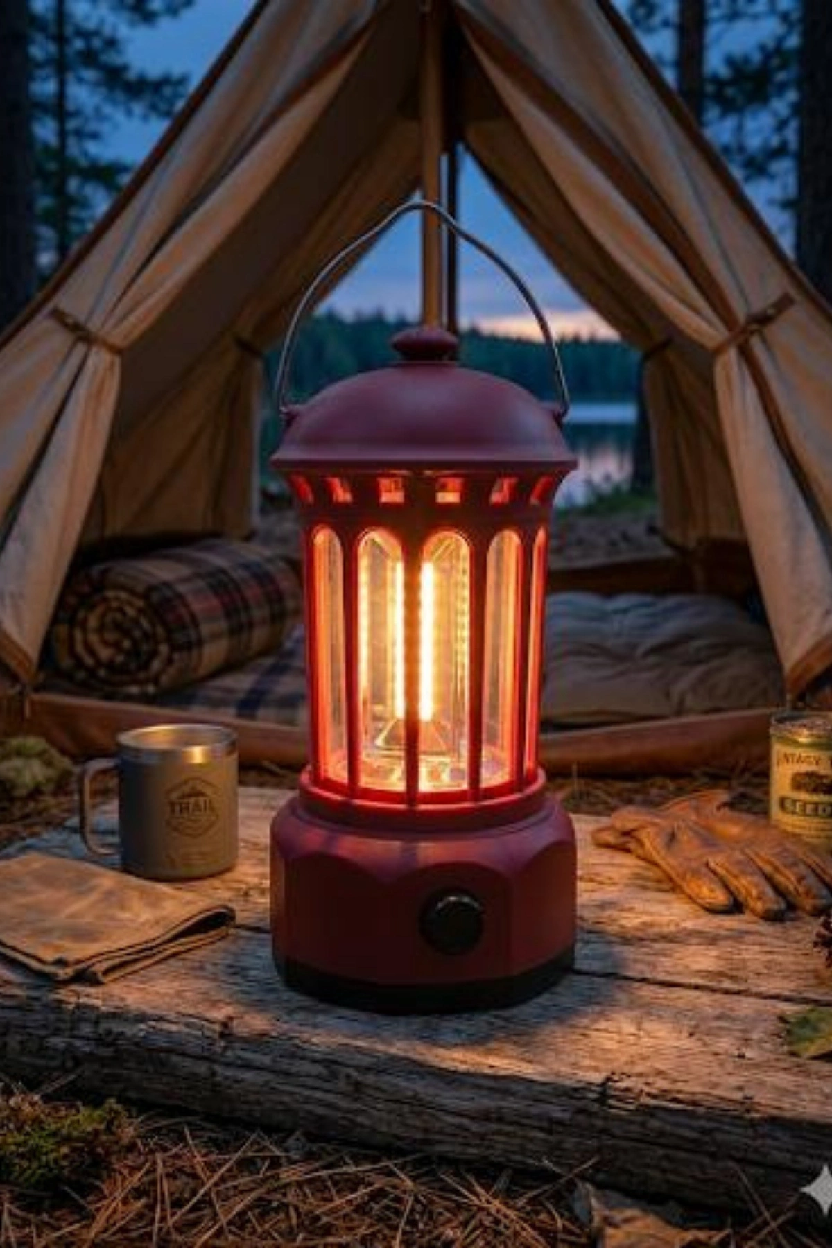 Retro Tasarım Şık Kamp Lambası – Şarj Edilebilir & Taşınabilir Dış Mekan Aydınlatması