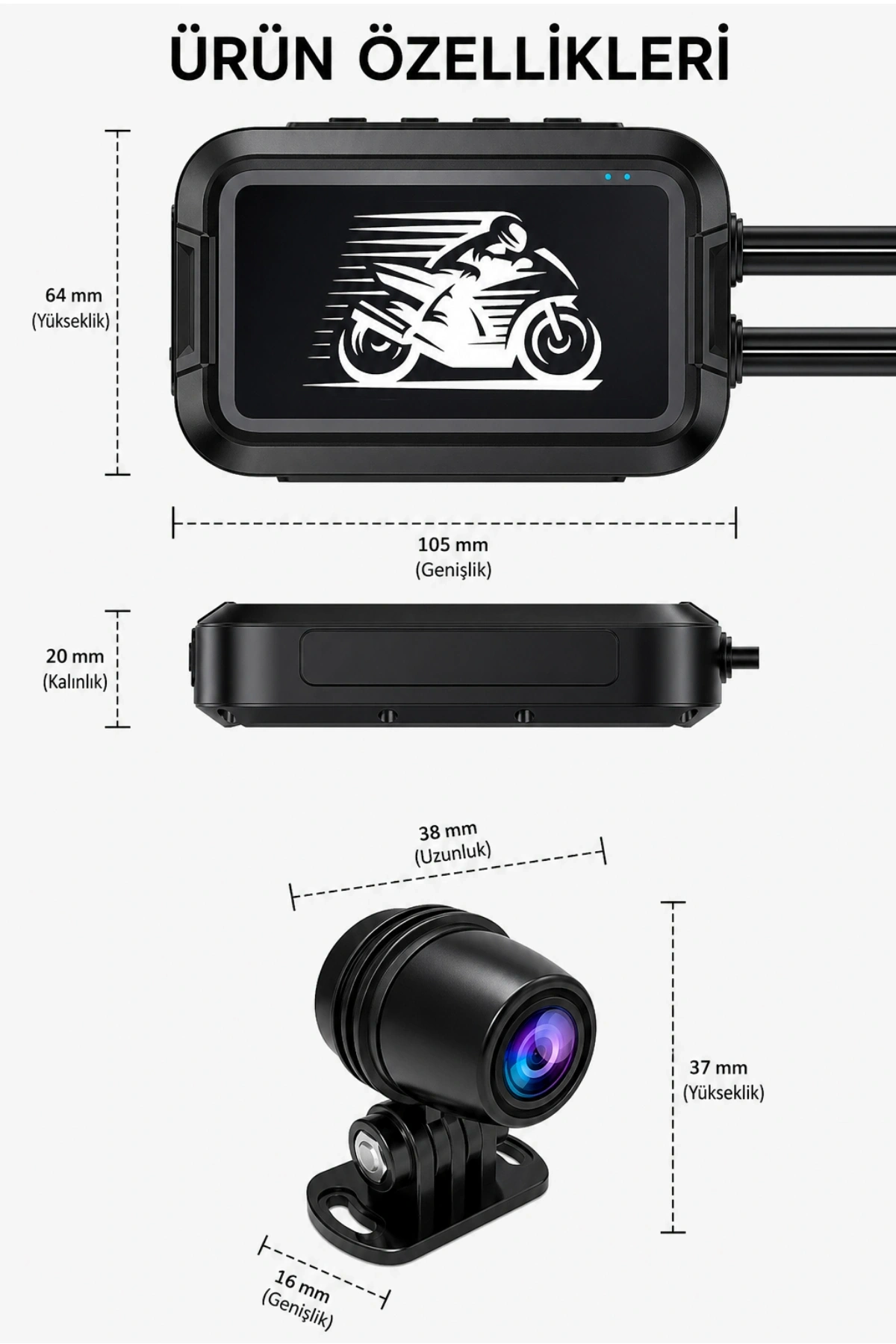 * Uzaktan Kumanda: Fotoğraf çekme, Video kilitleme, Ekran değiştirme, WiFi açma/kapama