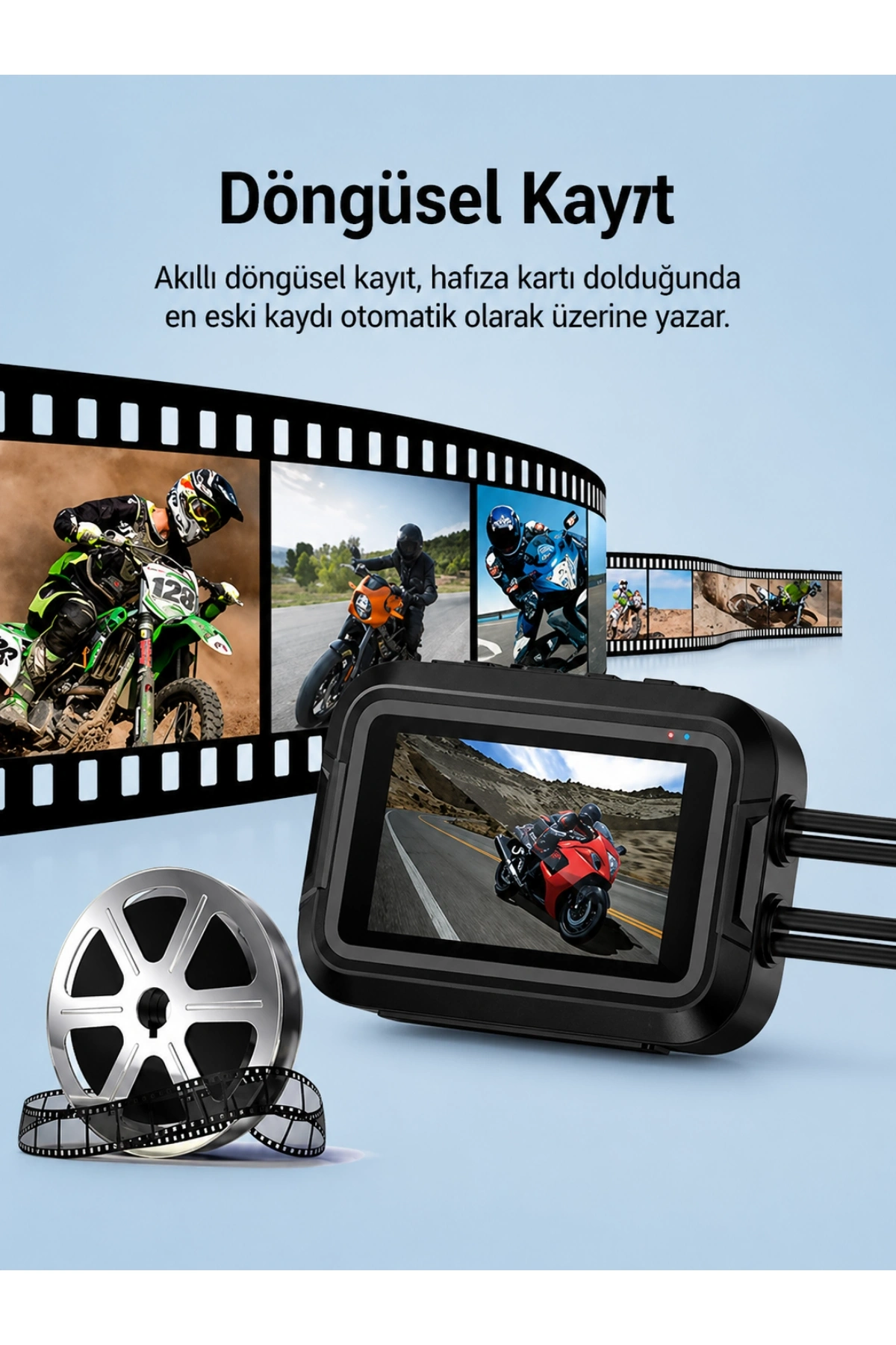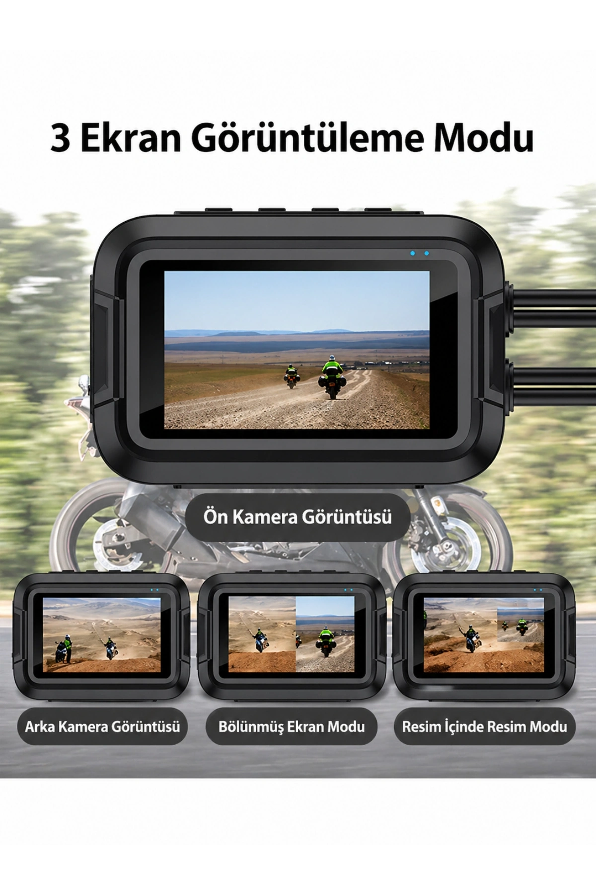 Motosiklet kullanıcıları için özel olarak geliştirilen GLR V9, sürüş güvenliğinizi bir üst seviyeye taşıyor. Full HD 1080P çözünürlüğe sahip ön ve arka kameraları, her iki yönde de 150 derecelik geniş açısıyla hiçbir detayı kaçırmamanızı sağlar.