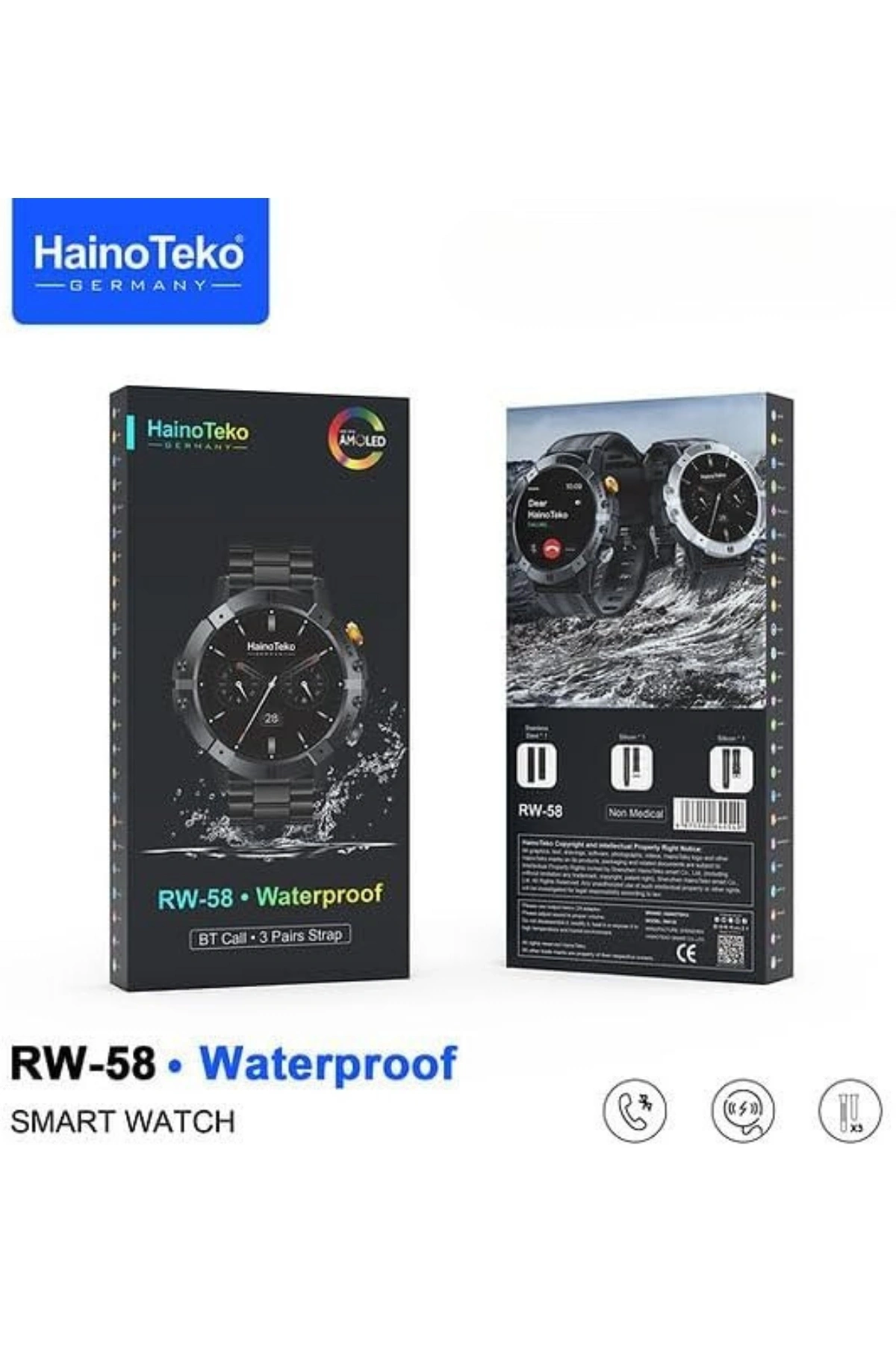 Haino Teko RW-58, zarif tasarımı ile gelişmiş teknolojiyi birleştiriyor. Canlı AMOLED Ekranı, uzun pil ömrü ve üç farklı kordon seçeneği ile her ortamda tarzınızı tamamlar.