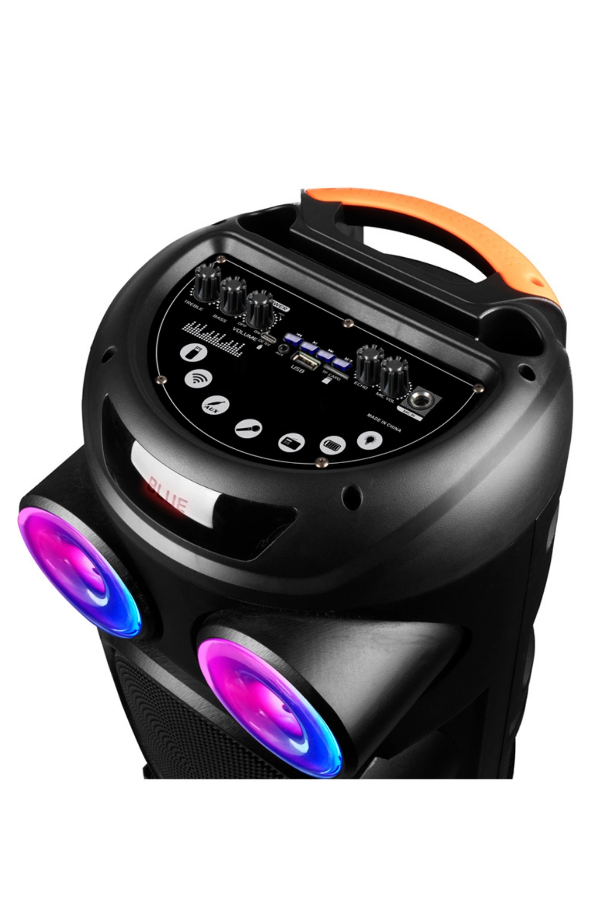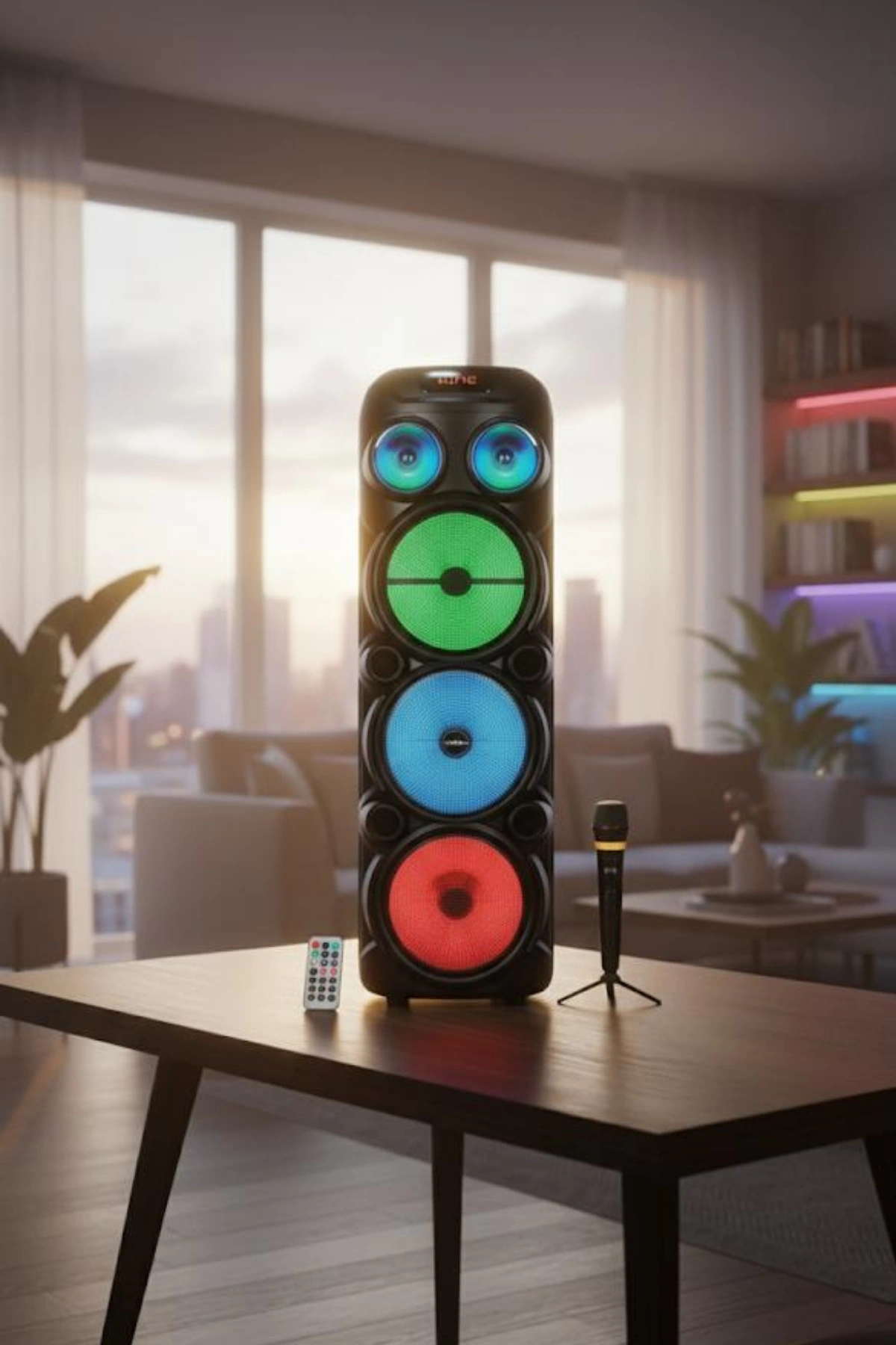 HEPU HP-974, etkileyici ışıklandırması ve çok yönlü ses bağlantı seçenekleri ile ev partilerinden açık alan etkinliklerine kadar eğlencenizi doruklara taşır. 20W ses gücü, üç adet 8 inç hoparlör ile desteklenir. Kablosuz mikrofon ve Bluetooth özelliği sayesinde karaoke ve müzik keyfini bir arada sunar.