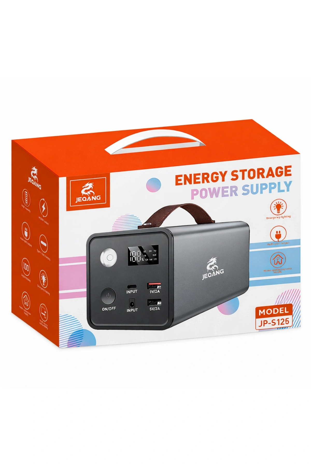 JEQANG JP-S125, kamp tutkunları, dijital göçebeler ve acil durum hazırlığı yapanlar için tasarlanmış yüksek kapasiteli bir taşınabilir güç istasyonudur. Şık tasarımı ve ergonomik taşıma sapı ile enerjiyi dilediğiniz her yere taşıyabilirsiniz.