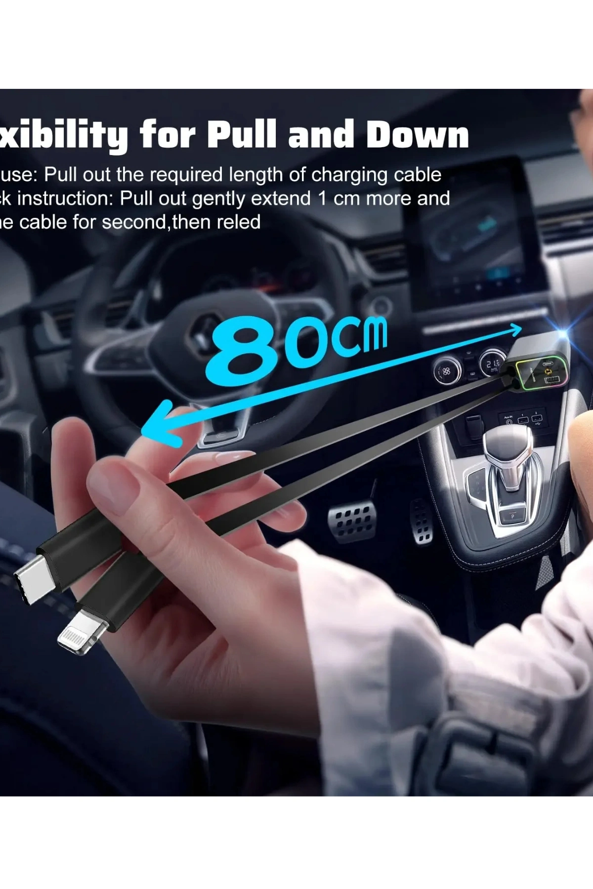 araç içi hızlı şarj, teleskopik araç şarjı, makaralı şarj kablosu, iphone araç şarjı, type-c araç şarjı, 66W araç şarj cihazı, yıldız projeksiyonlu şarj, oto şarj kiti.