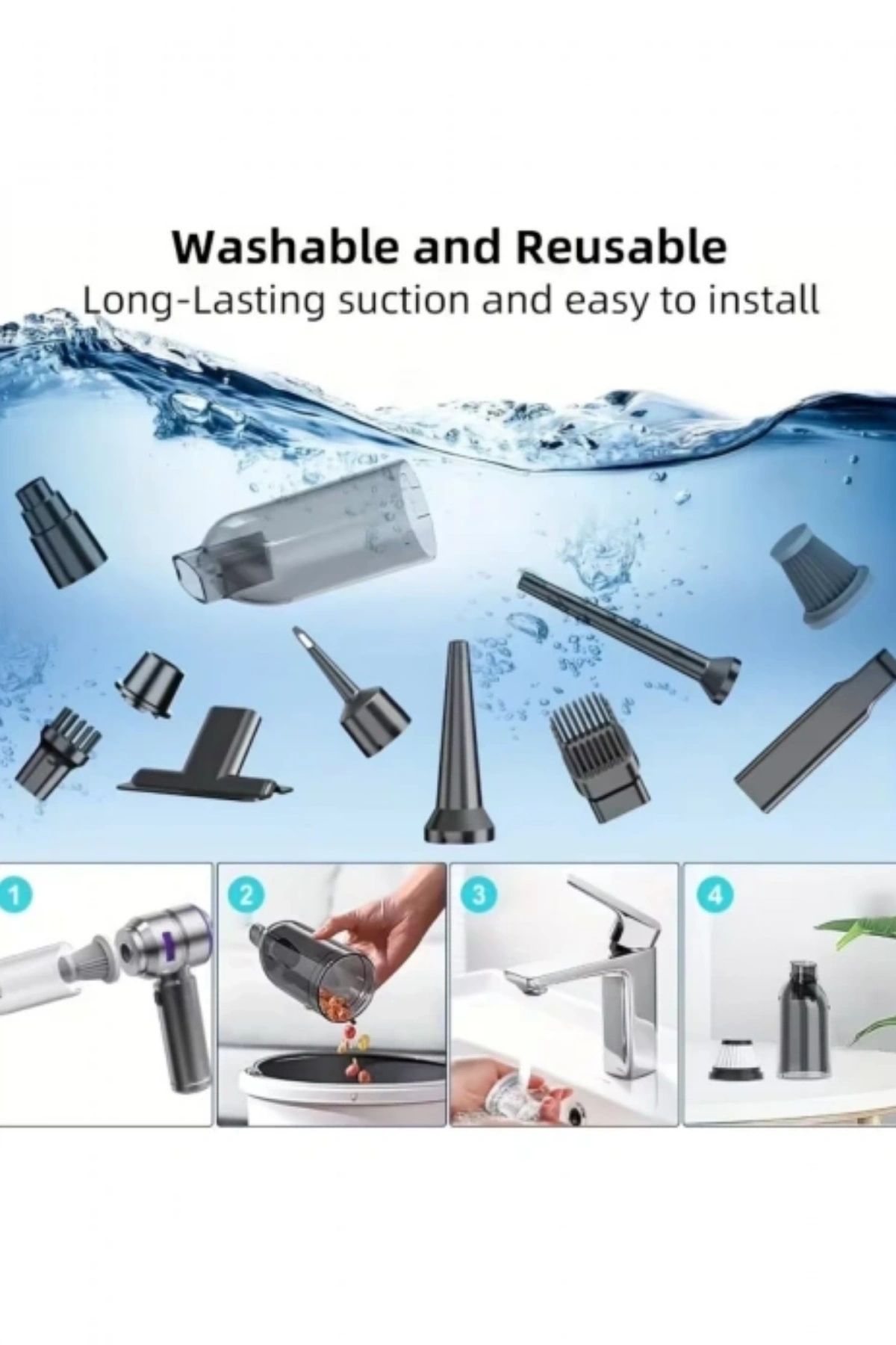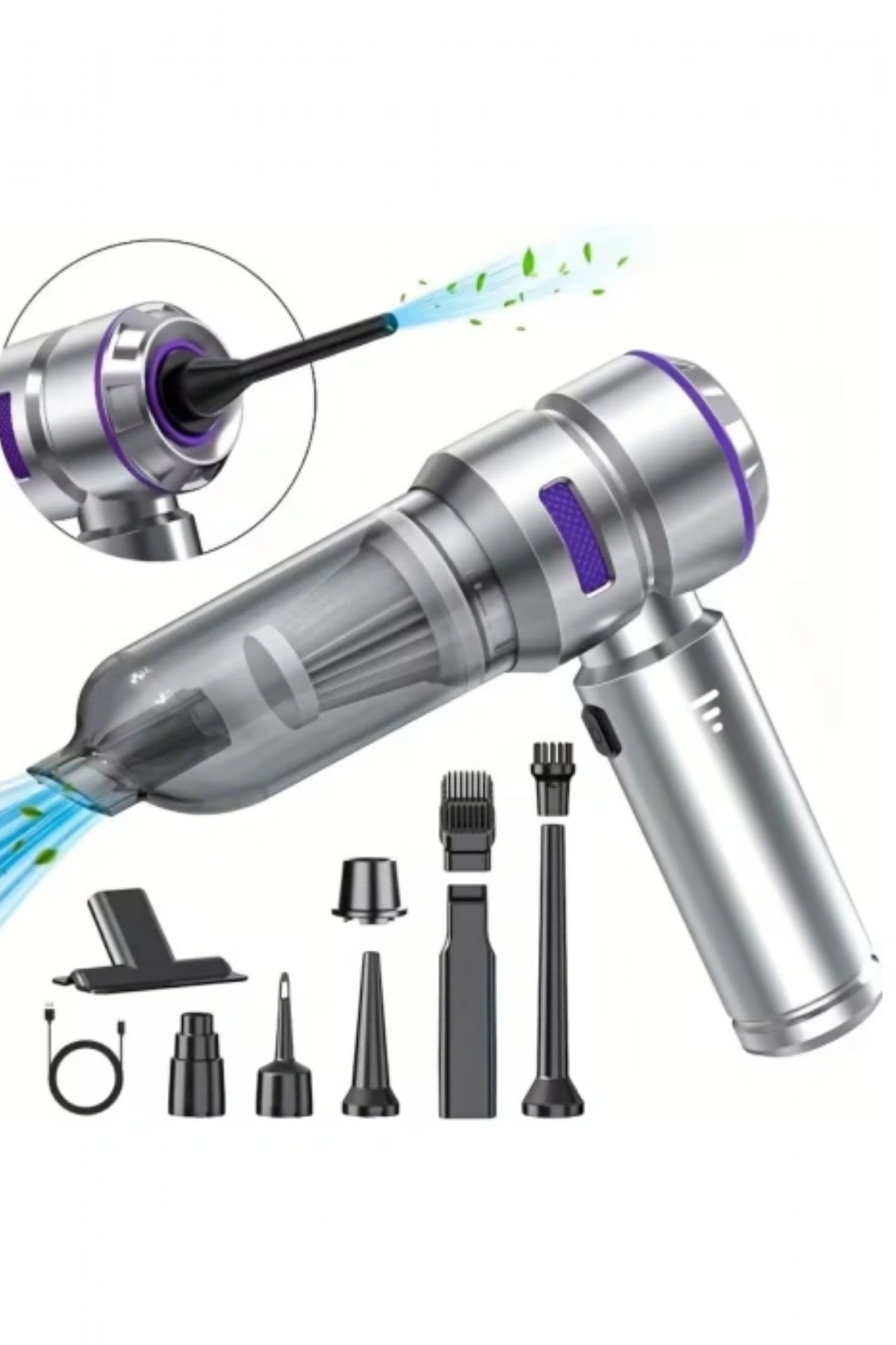 * 4 in 1 Fonksiyon: Sadece vakum yapmaz; özel uçları sayesinde üfleme (blow), pompalama ve fırçalama özelliklerini tek cihazda toplar.