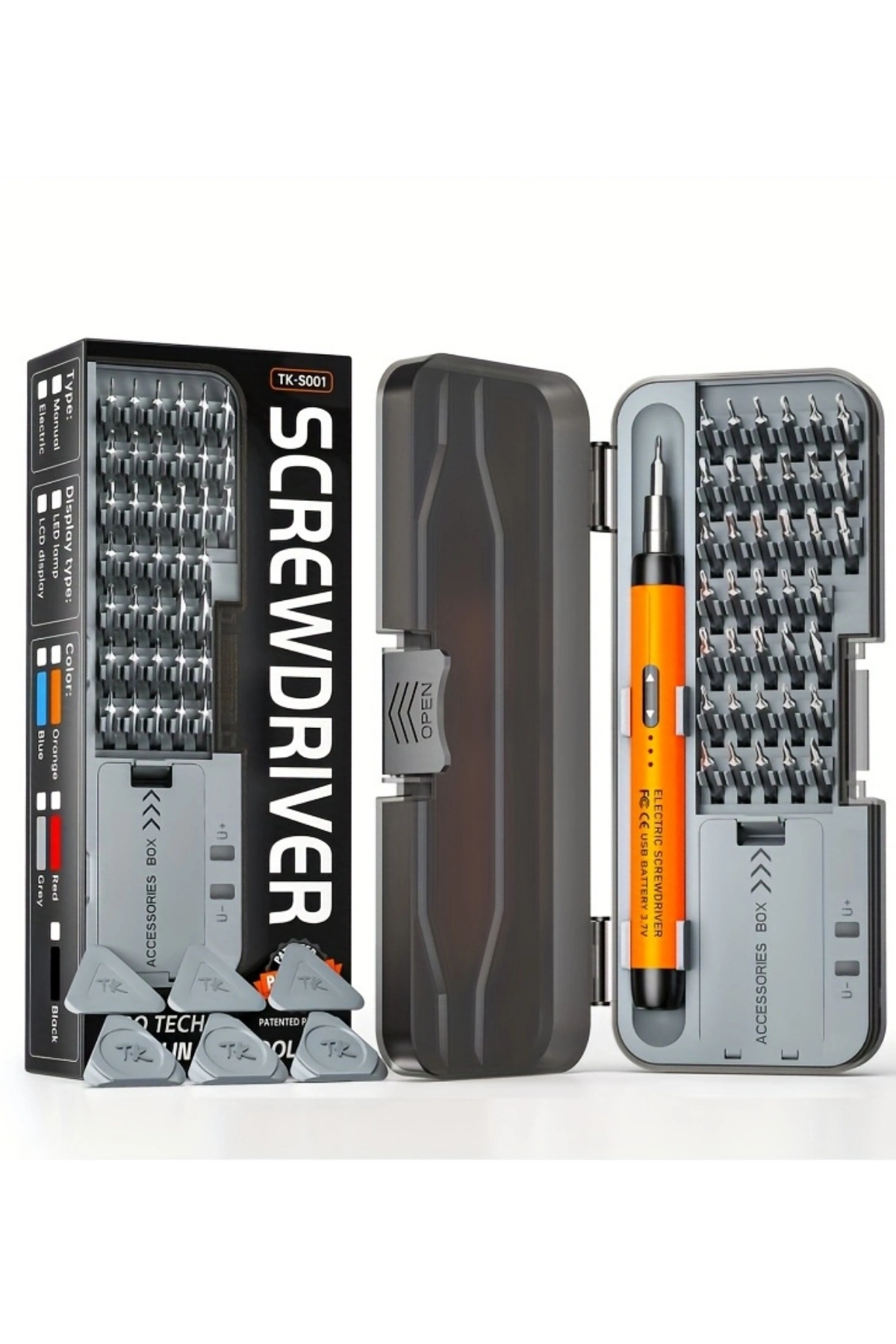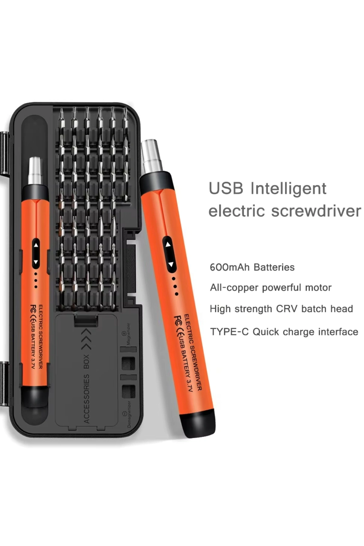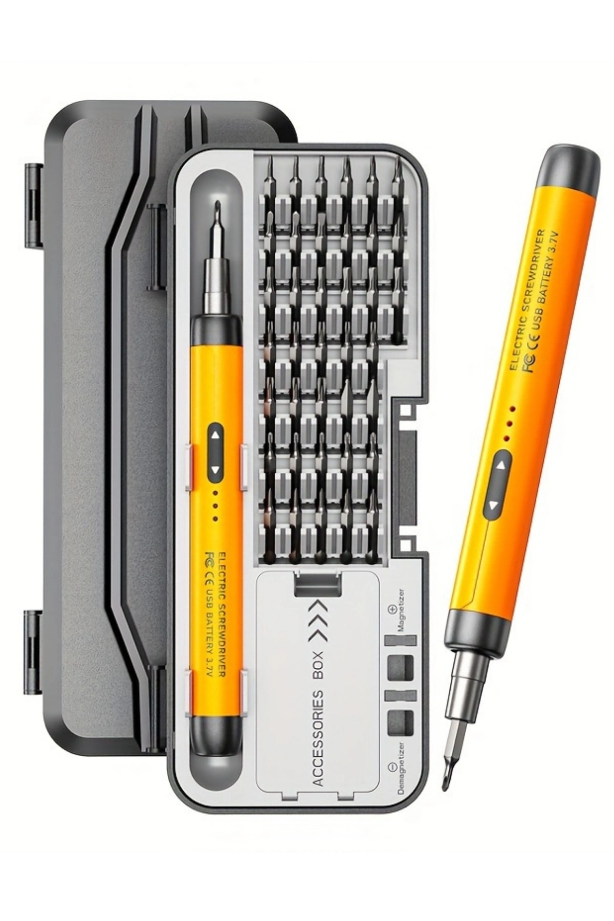 Ürün 1 takım şunları içerir: 38 adet tornavida ucu, 1 adet şarj kablosu ve 6 adet sökme penası