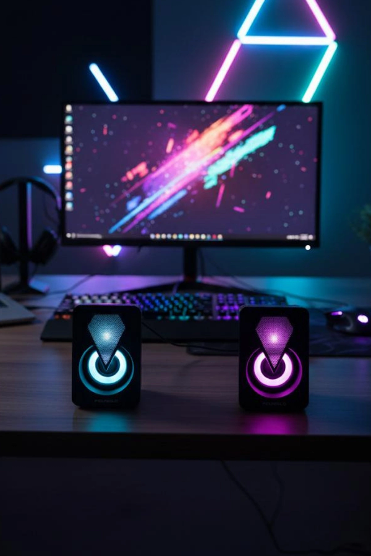 * Görsel Şölen: Hoparlörlerin ön yüzeyindeki dinamik ve renkli RGB aydınlatma, özellikle karanlık ortamlarda masanıza estetik bir hava katar.