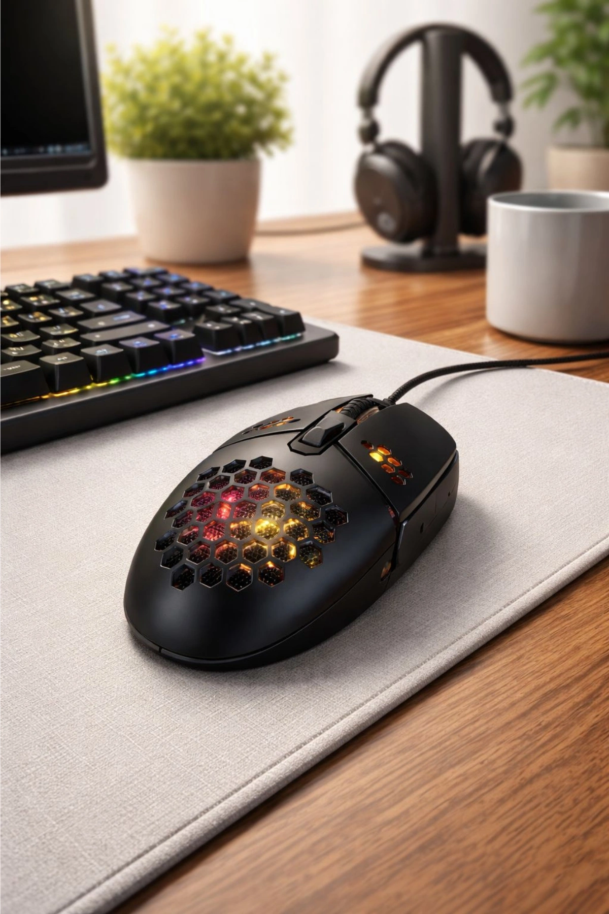 * Tasarım: Petek dokulu, hafif oyuncu mouse'u